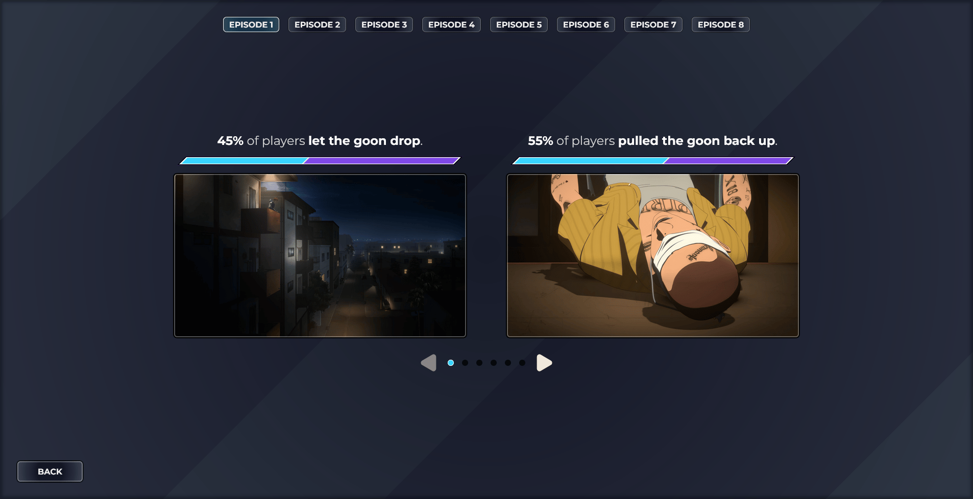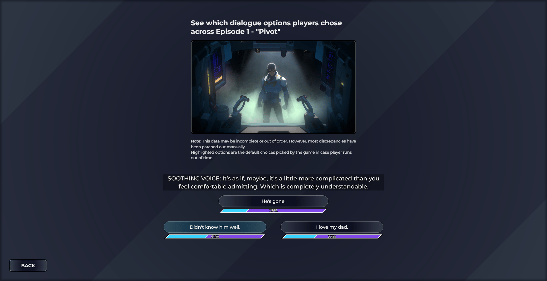 A web app that shows what players are choosing in Dispatch. You can see every story option, dialogue choice, some of the quick-time events and other gameplay stats.